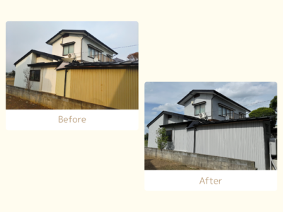 以前は母屋と物置で色が異なっていましたが、今回は母屋と物置の色を屋根・外壁ともに統一✨